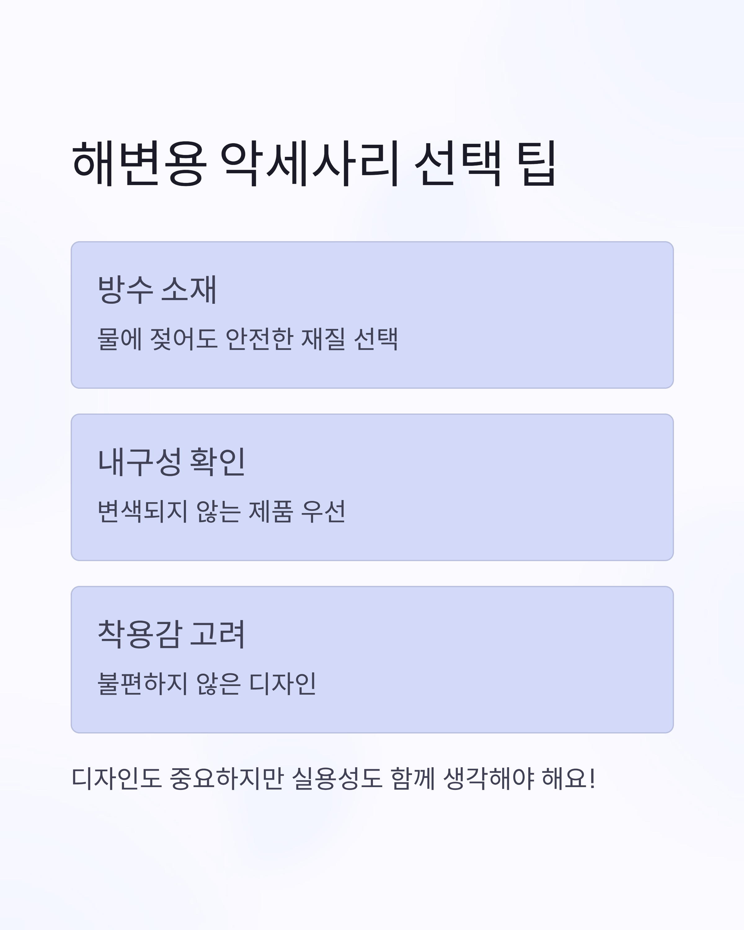 해변용 악세사리는 방수와 내구성도 고려해야