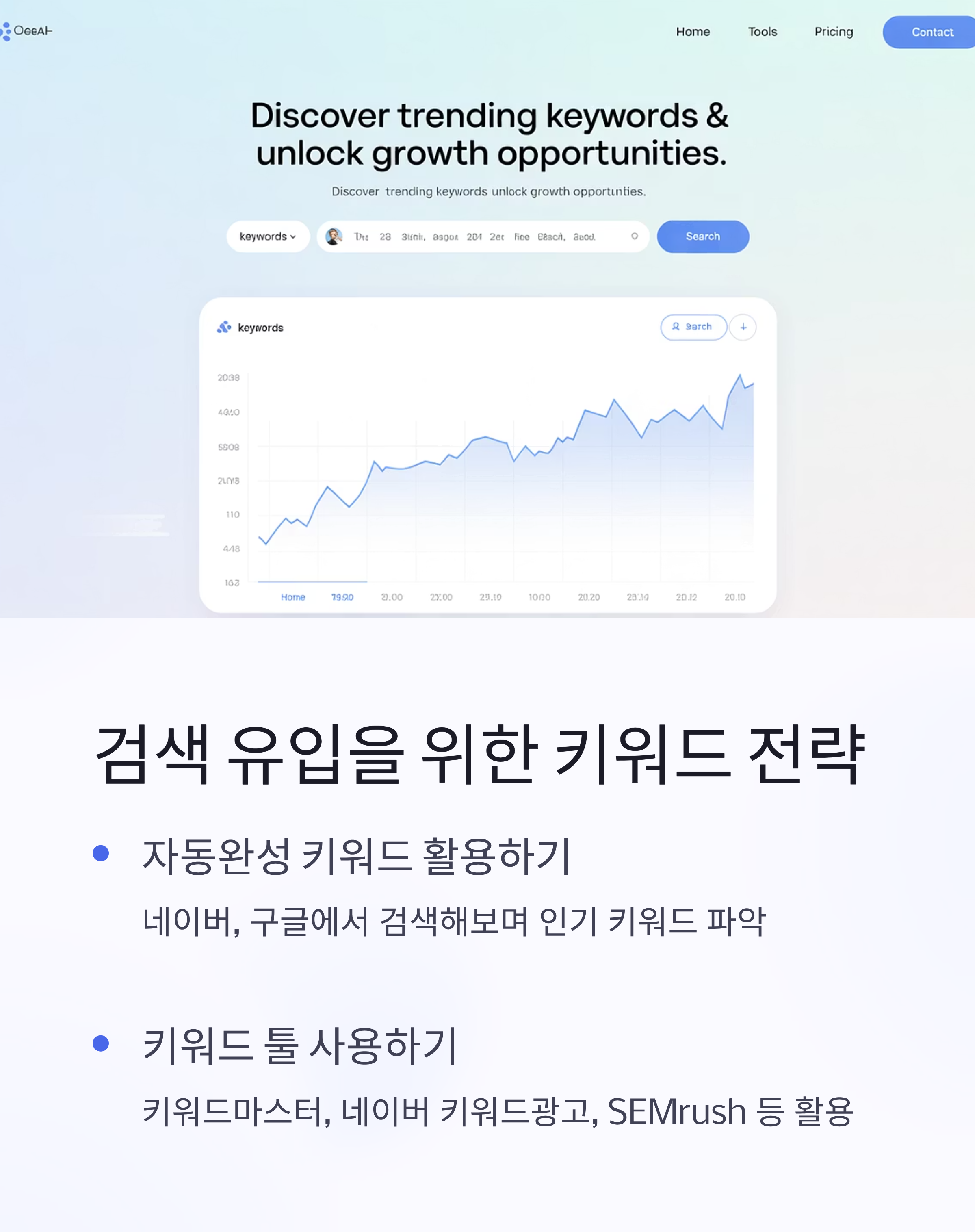 • 키워드 툴 활용: 키워드마스터, 네이버 키워드광고, SEMrush 등