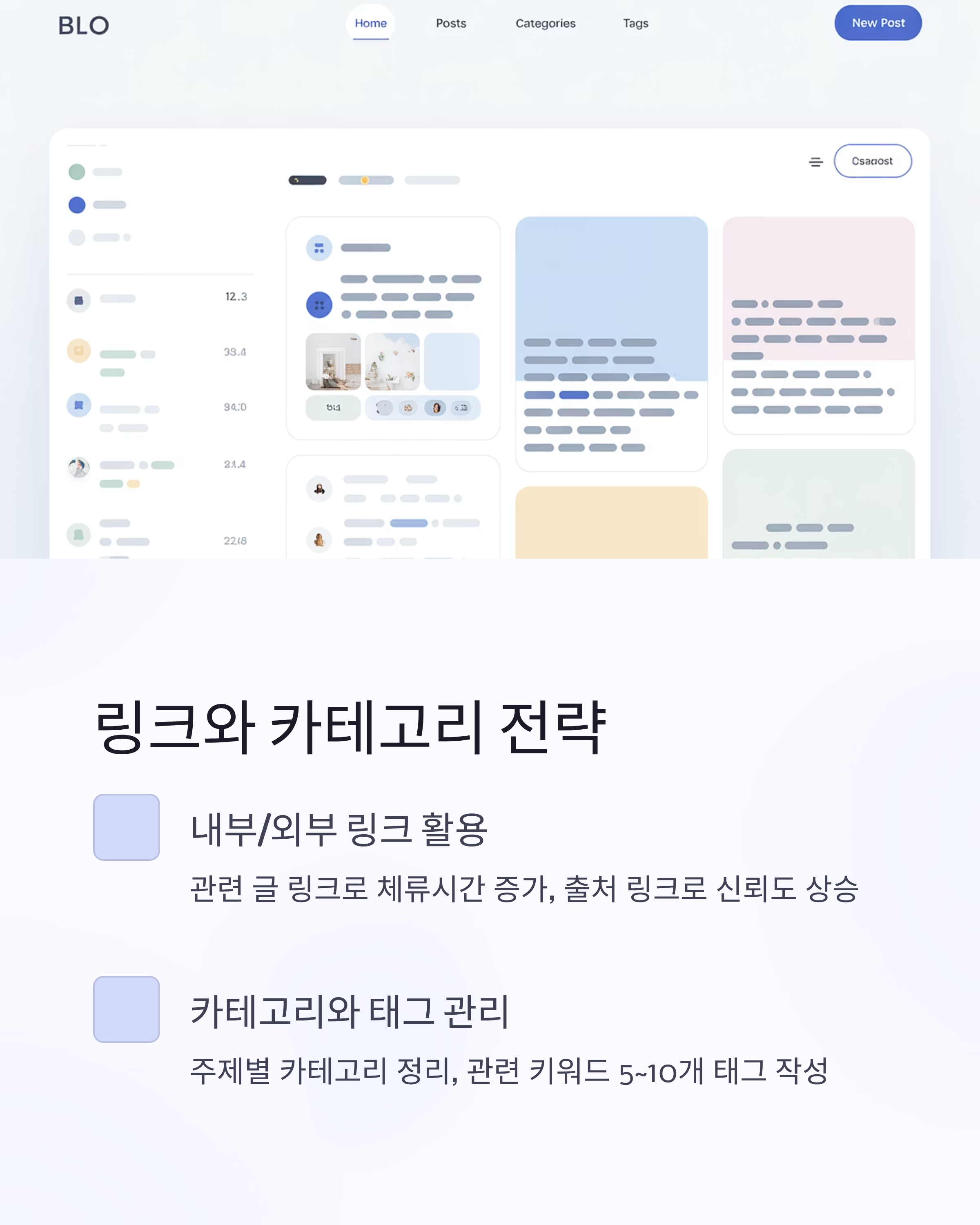 • 일기식 글보다 카테고리 중심의 정보성 콘텐츠가 검색에 유리
