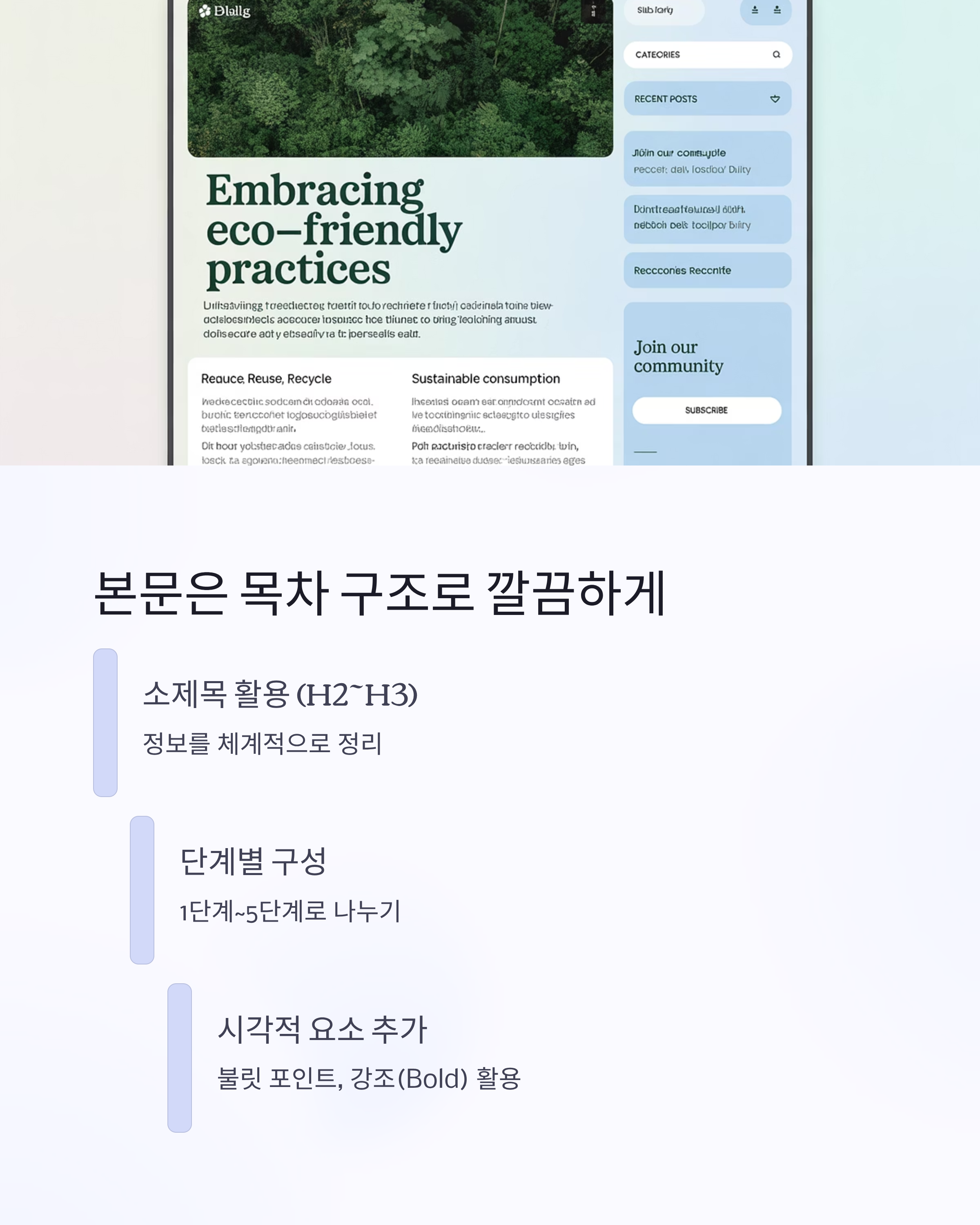 • 소제목(Heading2~3)으로 정보 정리
